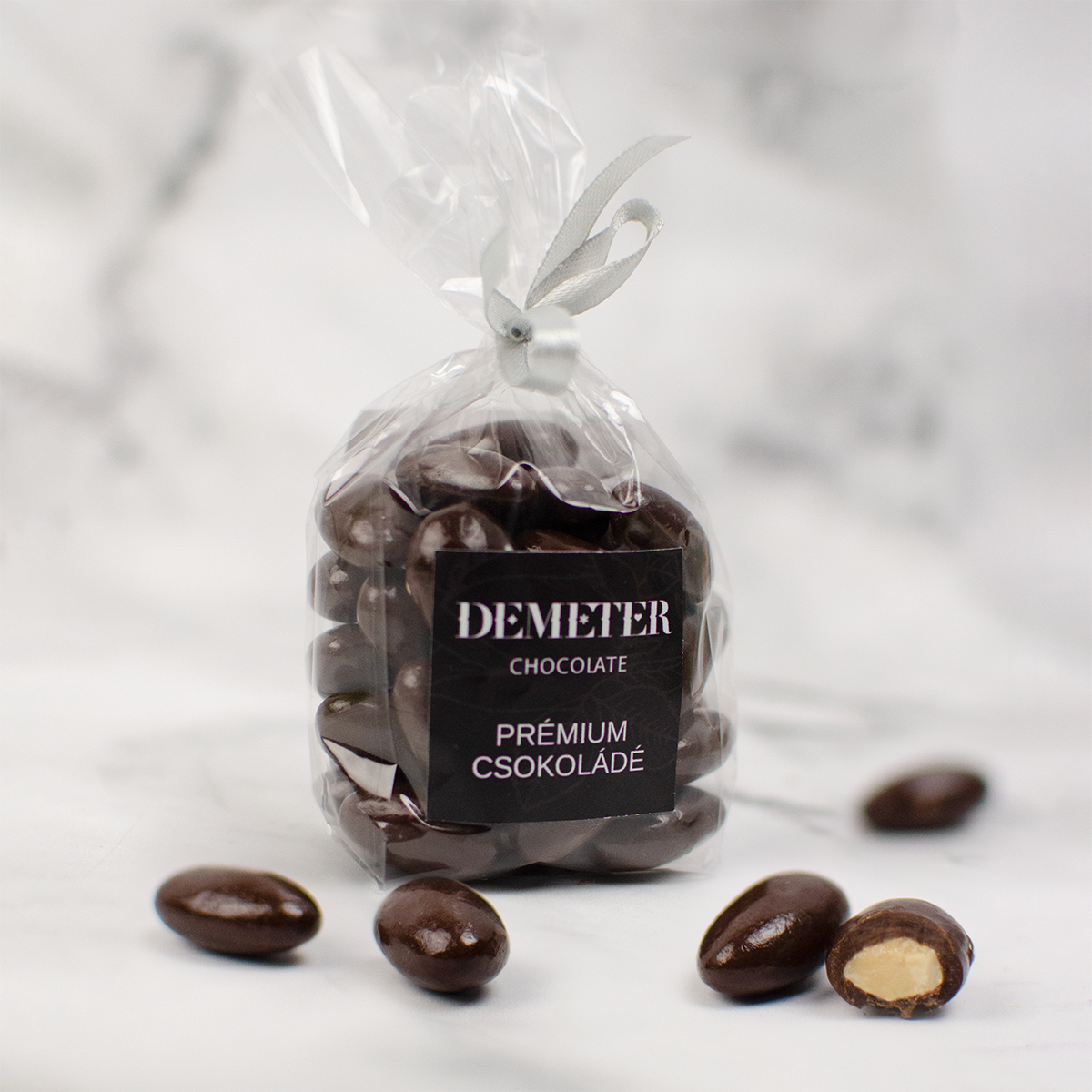 A Demeter Chocolate cukormentes mandulás drazséja tökéletes összhangot teremt a roppanós mandula és a bársonyos Demeter étcsokoládé között.