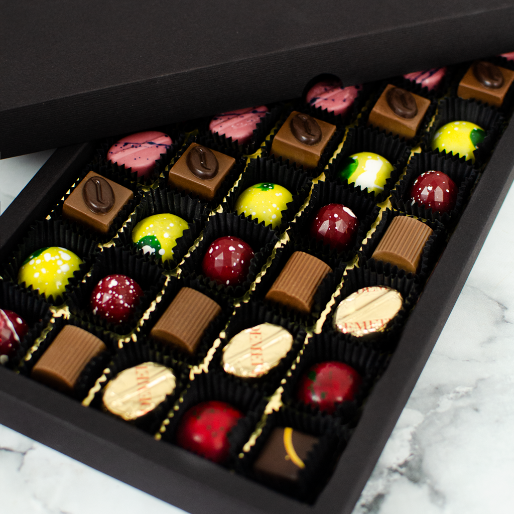 45 bonbon, 45 érzékeket elbódító tökéletes csokoládés pillanat. Ha valami igazán különleges és elkápráztató ajándékot keresel, akkor a Deluxe Gourmet bonbonunk a legjobb választás.