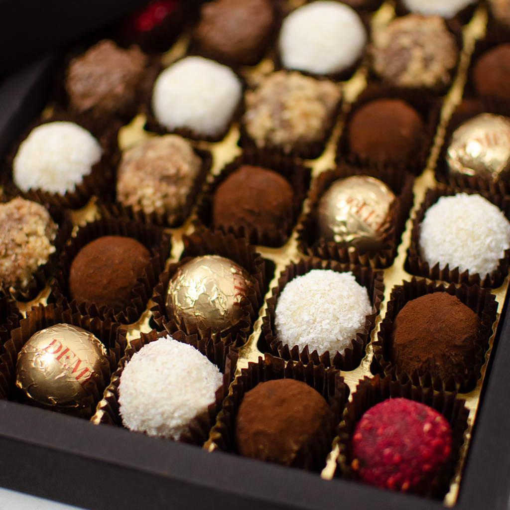 Éld át a Klasszikus Elegancia varázsát bonbonválogatásunkkal, mely időtlen ízeket ölel át. Kóstold meg málnakrémes étcsokis trüffelgolyónkat málnaporral megszórva, majd élvezd a kakaóban hempergetett étcsokoládés trüffelgolyót. Merülj el a mandulás-kókuszos fehércsokoládés és pörkölt mogyorós trüffelgolyóban. A végén pedig ki ne hagyd tejcsokis, kávés és pisztáciás trüffelünket, mely hagyományos Demeter tejcsokoládéba burkolózva idézi meg a klasszikus ízeket.