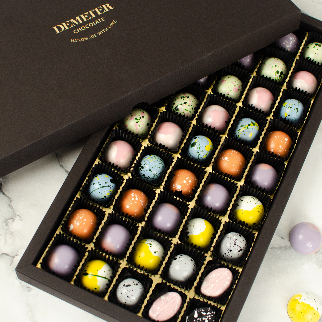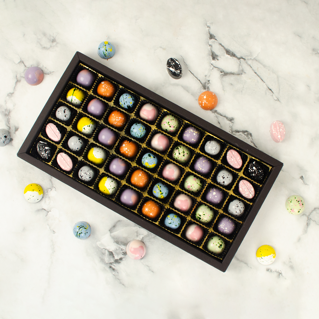 45 bonbon, 45 érzékeket elbódító tökéletes csokoládés pillanat. Ha valami igazán különleges ízvilágú és szemet gyönyörködtető ajándékot keresel, akkor a Deluxe Gourmet Tavasz bonbonunk a legjobb választás számodra.