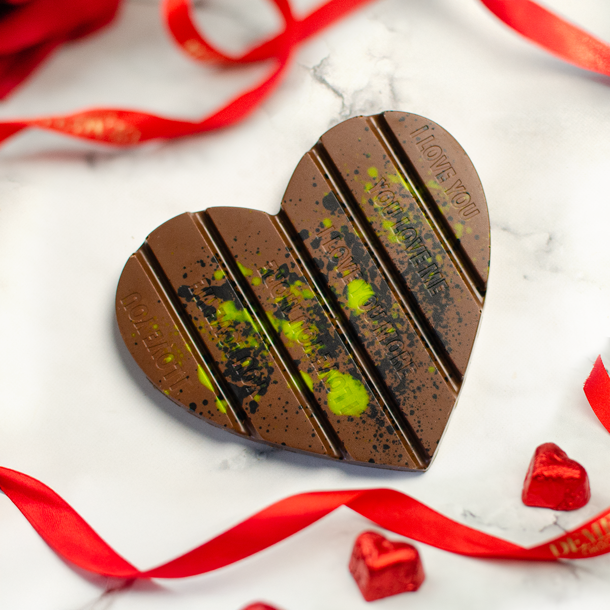 Ajándékozd kedvenc Demeter csokis ízélményedet, a prémium 40%-os kakaótartalmú tejcsokoládénkkal készült Dubai pisztáciás szív táblásunkat!