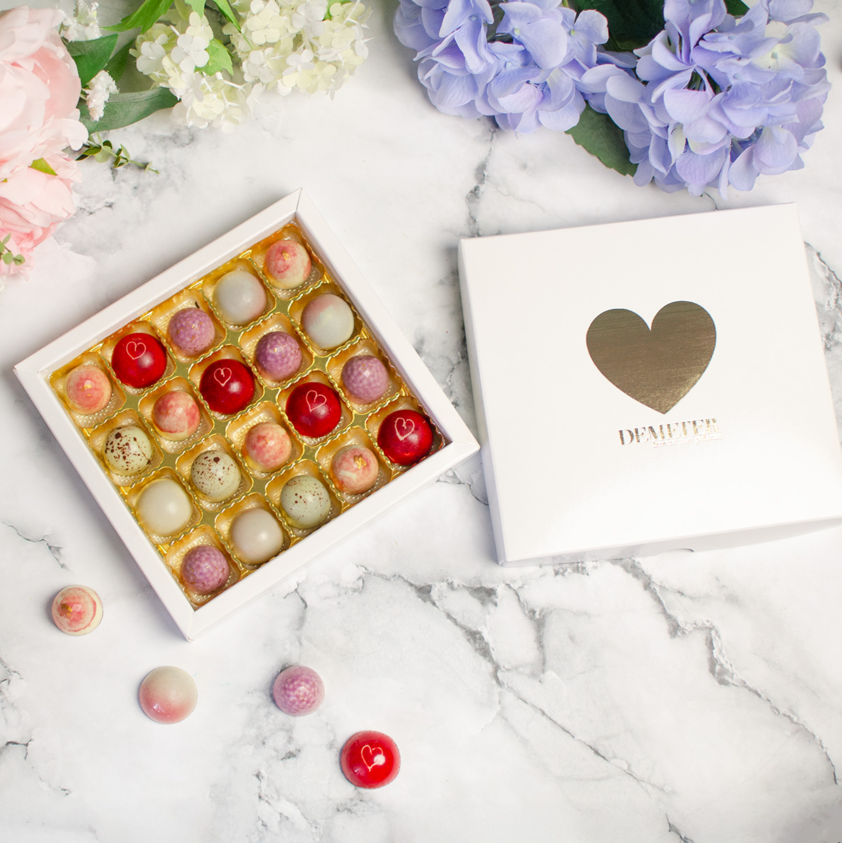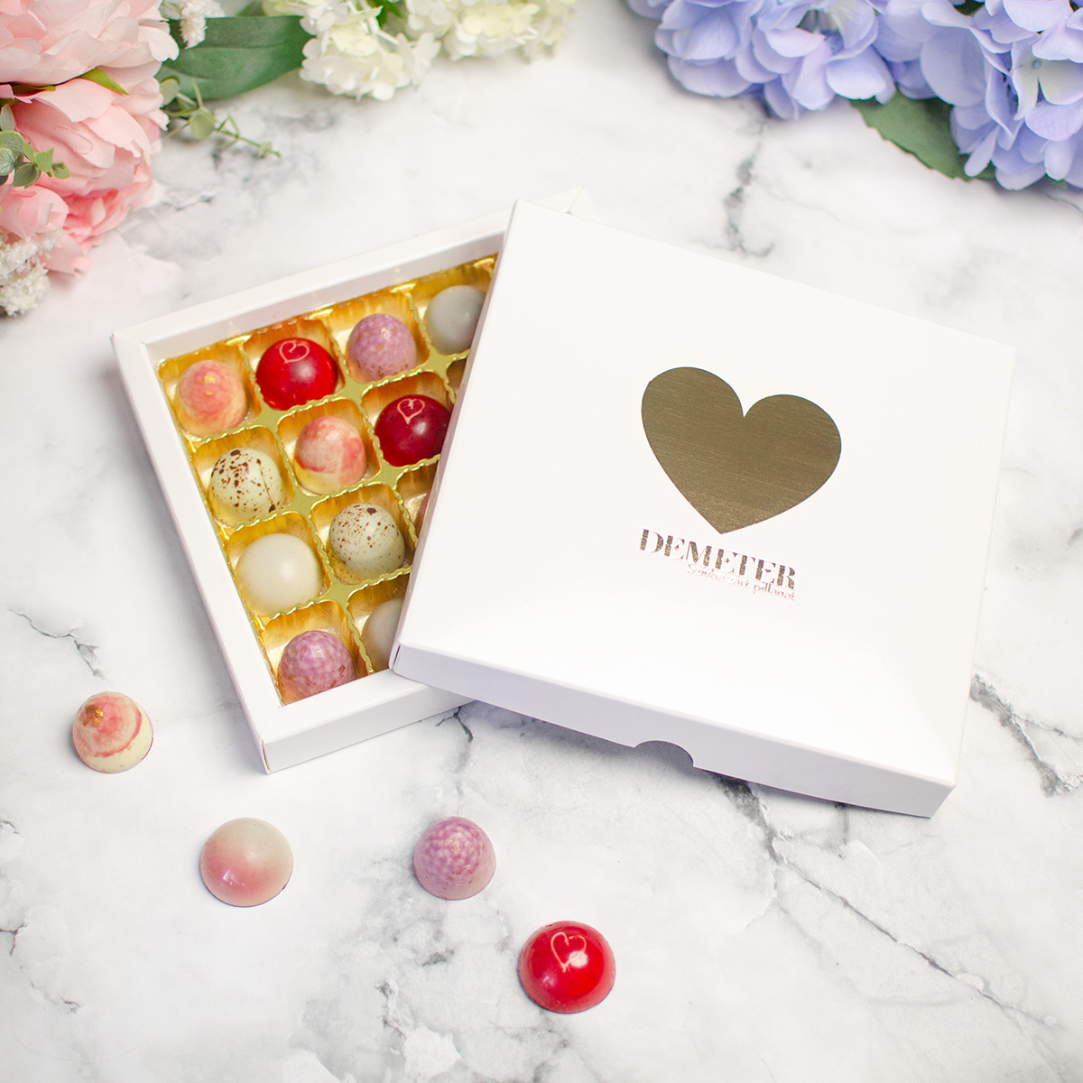 Lepd meg életed különleges hölgyeit Divine bonbonválogatásunkkal, amely maga a tökéletes harmónia és elegancia. Ez a 20 darabos prémium válogatás olyan kifinomult ízekkel csábít, mint a roppanós vanília, az eperzselés pezsgőkrém, a kék szőlős panna cotta, az amarena meggyes bourbon vanília és az édesen krémes eper-joghurt. Minden bonbon egy apró ékszer, amelyben a luxus és az érzékiség találkozik, hogy felejthetetlenné tegye a Nőnapot.