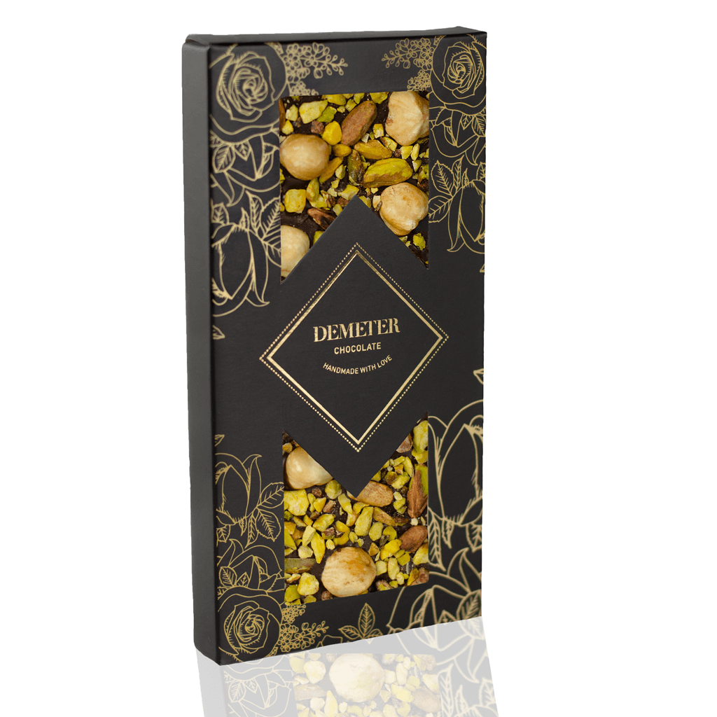 Nálunk mindenki megtalálhatja a kedvenc pisztáciás csokoládéját. A roppanós pisztácia kiválóan illik a mogyorók királynőjének is nevezett piemonti mogyoróhoz, melyet a híres Olaszországi Piemont tartományból hoztunk el neked. A lágy, selymes 60%-os kakaótartalmú Demeter étcsokoládéval szerelem lesz első harapásra.