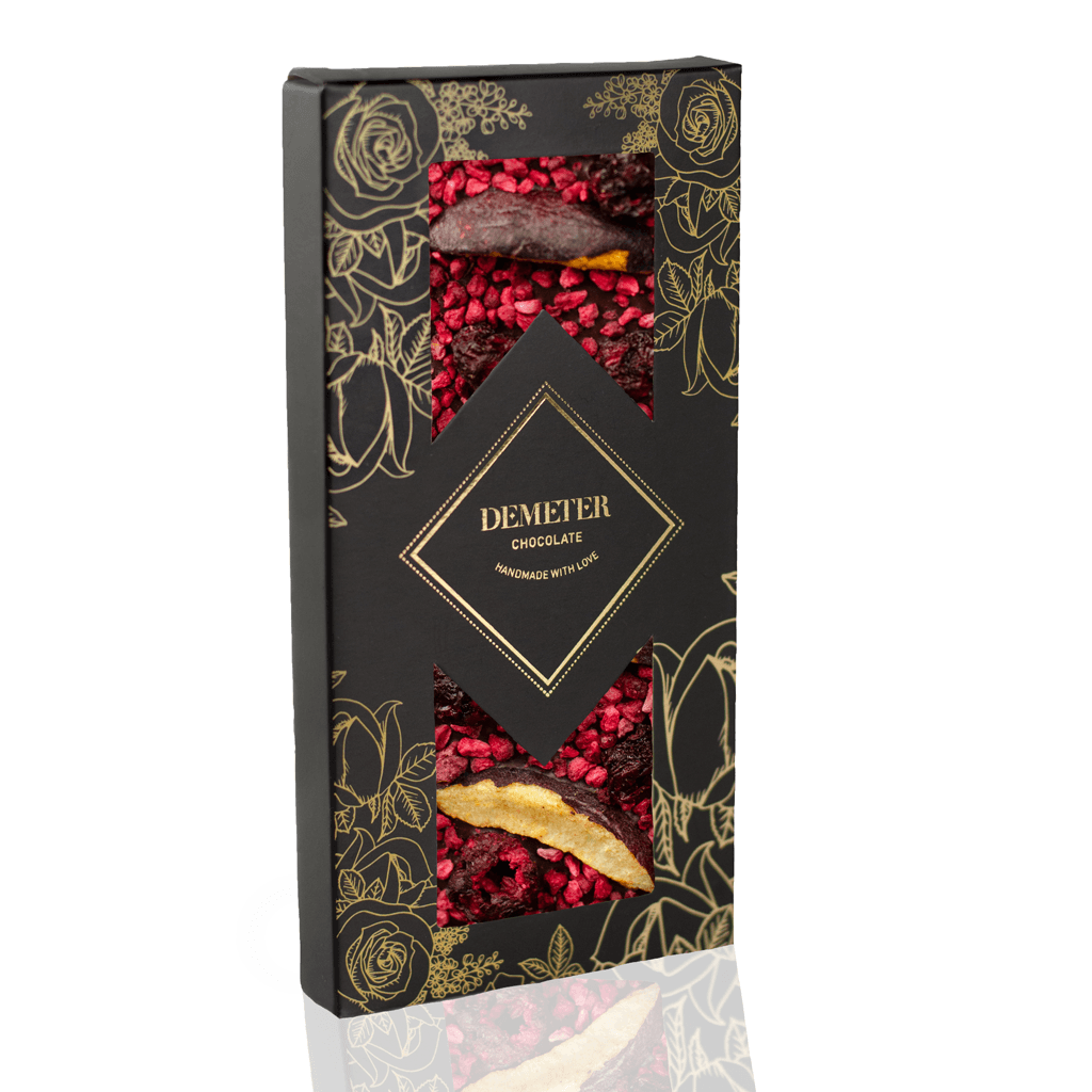 A szilva karakteres, hamvas íze nem csak ősszel élvezhető. Meggyel és málnával megbolondítva, prémium minőségű Demeter csokoládéra szórva, az érzékeket elzsongítóan különleges és finom. Kérsz egy harapást?