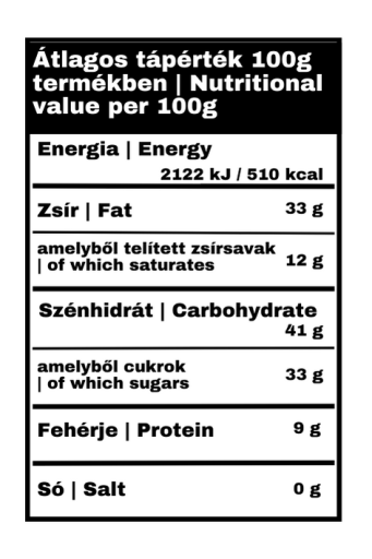 cukor, kakaómassza, kakaóvaj, zsíros tejpor, tejszín, narancs püré, limoncello, citromsav, szicíliai narancs és citrom olaj, emulgeálószer: szójalecitin, természetes vanília.
