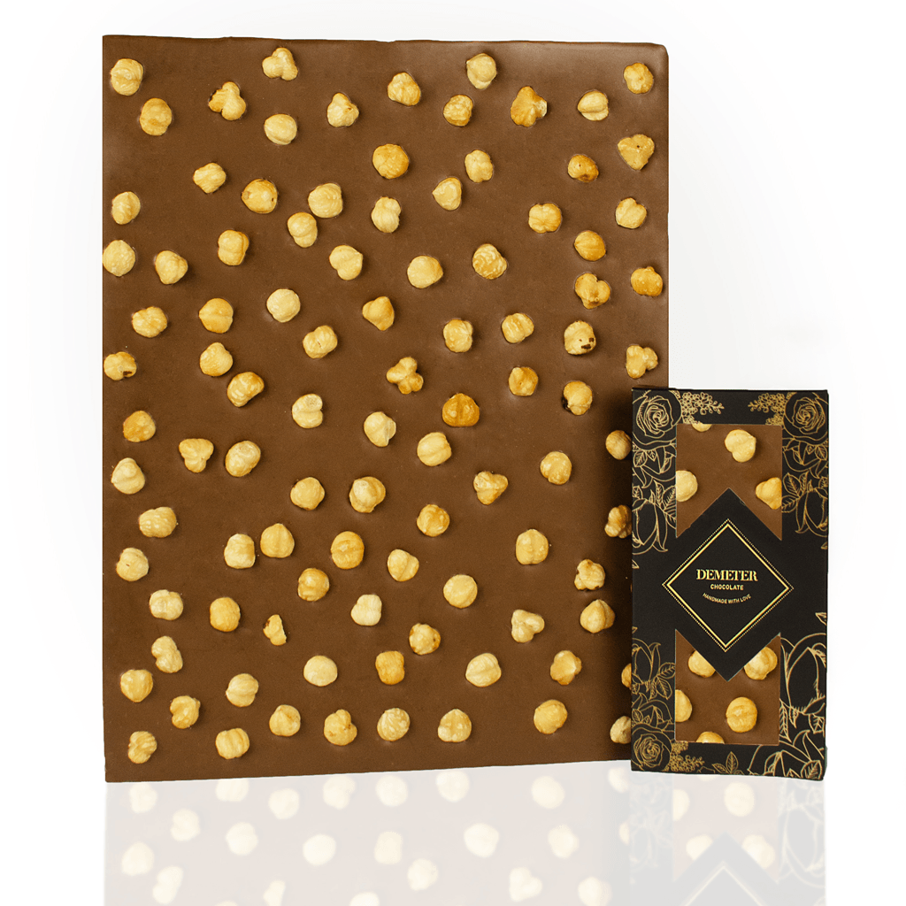 Emeld a négyzet négyzetére a Demeter csokoládéimádatot, és kóstold meg óriás táblás csokoládénkat, mely a selymes és krémes 41% kakaó tartalommal rendelkező prémium tejcsokoládé és a különleges aromájú piemonti mogyoró kettősével téged is levesz majd a lábadról. Nagy méret, óriási ízélmény!