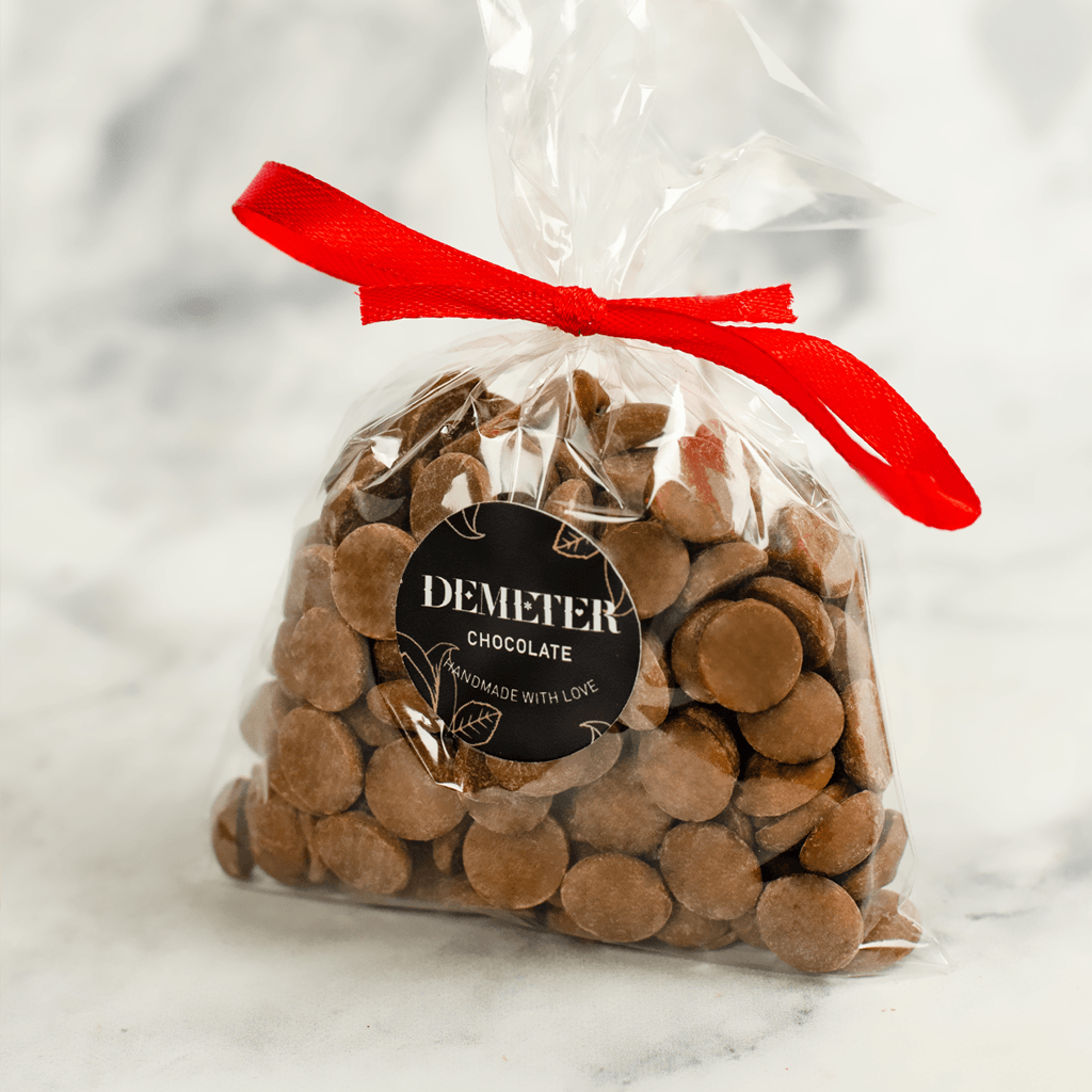 A Demeter tejcsokoládés csokipasztillák a 41%-os kakaótartalommal rendelkező tejcsokoládé harmonikus ízélményét hozzák el otthoni sütések és desszertkészítések során.