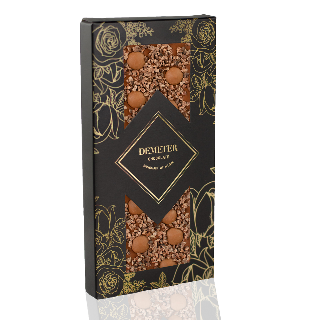 Tejcsokoládé karamellás csoki pasztillával és kakaóbabtörettel