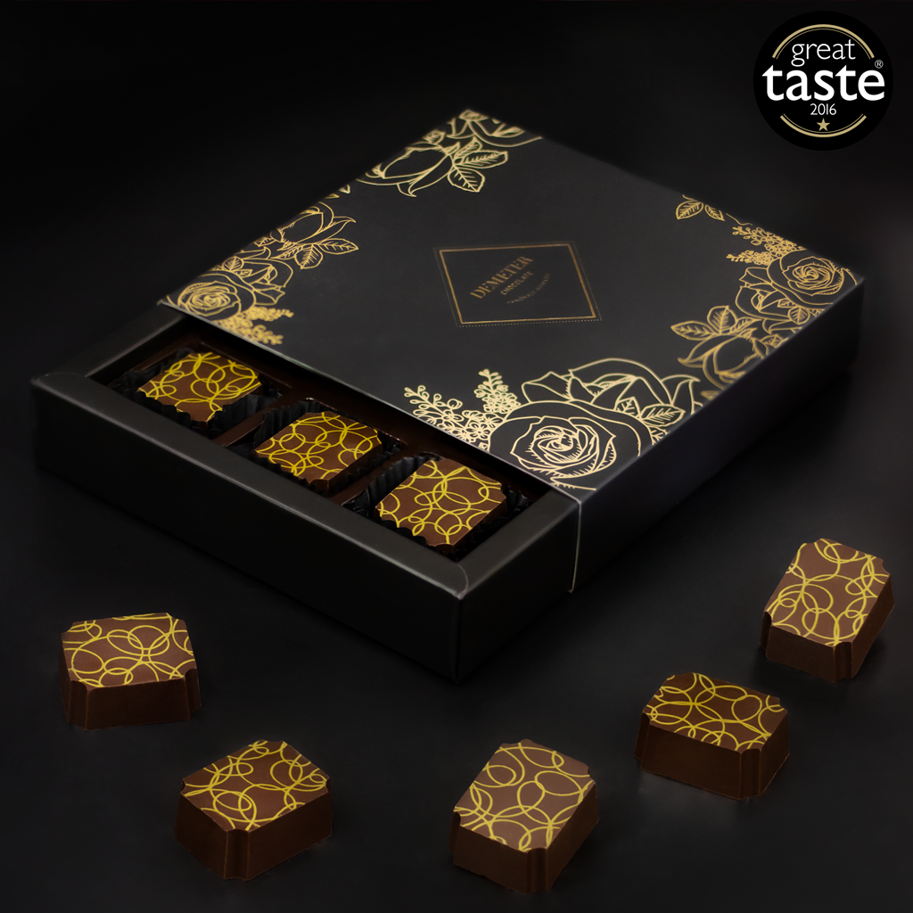Bemutatjuk legújabb bonbonunkat, a Sajmeggy Pálinkás Bonbonválogatást, amely egyszerre ötvözi a Demeter Chocolate kivételes kézművességét és a Gong Pálinka sajmeggy pálinkájának lenyűgöző karakterét. Add át magad a pálinkás trüffelréteg és a pürésített, pálinkában ázó meggy darabok egyedülálló kombinációjának.